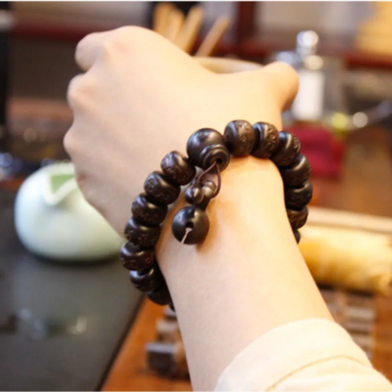 Ubeauty Hand carved real peach wood beads bracelet Buddha bracelets for men women